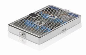 For sterilization, the MELAstore-Trays are inserted in the corresponding MELAstore-Box. The lid of the MELAstore-Boxes are perforated and equipped with a holder for a filter. The filters are available as disposable paper filters or as permanent filters and have to be ordered separately. For marking the MELAstore-Boxes MELAG offers identification plates with or without barcode that are fixed in the holder of the MELAstore-Box. There are also disposable seals available, with or without process indicator.